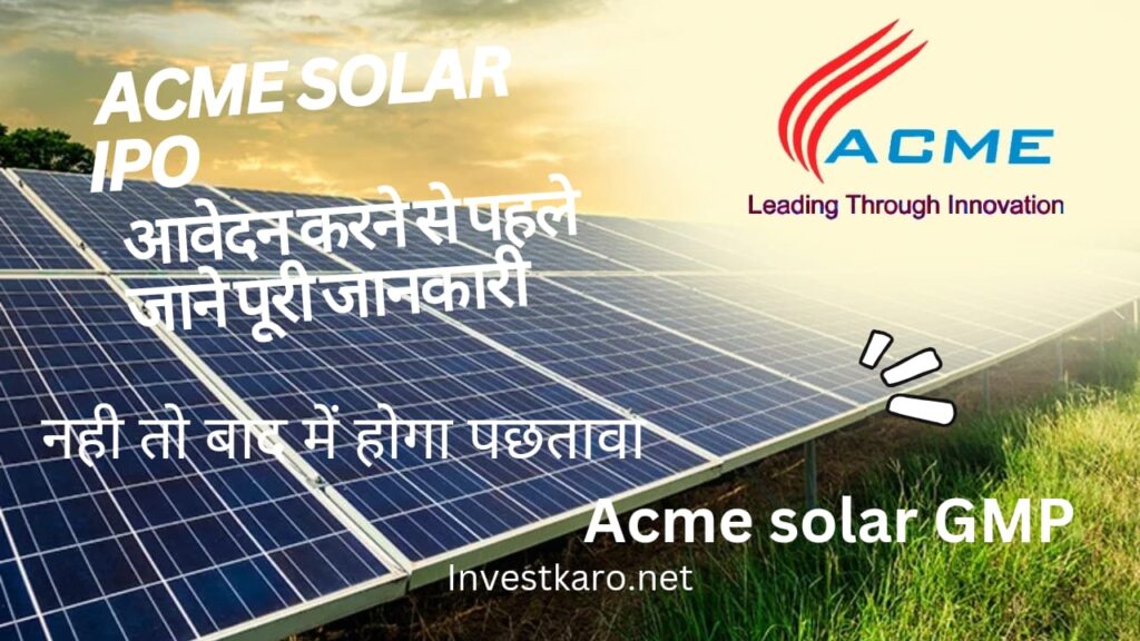 दोस्तों आपको बता दे की अगर आप ACME Solar Holdings Limited IPO के बारे में जानकारी लेना चाहते है तो ,यह आर्टिकल आपके लिए है ,आप मेरे इस पोस्ट को अंत तक जरुर पढ़ें.इस पोस्ट में आपको ACME Solar Holdings Limited IPO के बारे में पूरी जानकारी देंगे जिसे आप पढ़ के अपने एनालिसिस के आधार पर आवेदन कर सकते है।